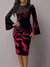 Women's Colorful Abstract Stripes Art Print Flared Sleeves Midi Bodycon Dresses
