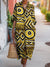 Women's Colorful African Retro Geometric Stripes Art Print Long Sleeves V-neck Dress