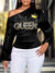 Women's Colorful Birthday Queen Art Print Asymmetrical Slant Collar Shirt