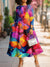 Women's Colorful Geometric Art Prints Cotton Lapel Button-down Shirt Dress