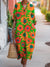 Women's Colorful Flowers Art Print Cotton Lapel Button-Down Shirt Dress