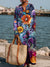 Women's Colorful Flowers Art Print Long Sleeves V-neck Dress