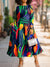 Women's Colorful Geometric Art Prints Cotton Lapel Button-down Shirt Dress
