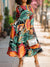 Women's Retro Geometric Art Prints Cotton Lapel Button-down Shirt Dress