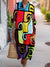 Women's Colorful Geometric Abstract Art Print Cotton Lapel Button-Down Shirt Dress