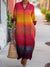 Women's Colorful Gradient Stripes Art Print Cotton Lapel Button-Down Shirt Dress