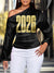 Women's Colorful Happy New Year Art Print Asymmetrical Slant Collar Shirt