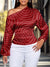 Women's Colorful Retro Stripes Art Print Asymmetrical Slant Collar Shirt