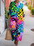 Women's Colorful Stripes Geometric Art Prints Cotton Lapel Button-Down Shirt Dress