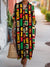 Women's Fashion Colorblock Geometric Art Print Cotton Lapel Button-down Shirt Dress