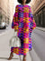 Women's Fashionable Retro Geometric Print Silhouette Round Neck Heathered Knitted Maxi Dress