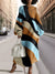 Women's Fashionable Retro Stripes Print Silhouette Round Neck Heathered Knitted Maxi Dress
