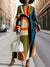 Women's Fashionable Stripes Art Print Silhouette Round Neck Maxi Dress