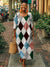 Women's Retro Abstract Geometric Art Print Long Sleeve Round Neck Dress