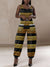 Women's Retro Abstract Geometric Patterns Print Sleeveless Strap Denim Jumpsuit