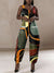 Women's Retro Abstract Geometry Pattern Sleeveless Strap Denim Jumpsuit