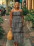 Women's Retro Abstract Stripes Art Print Sleeveless Suspender Casual Cotton Pocket Dress