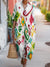 Women's Retro Colorful Pattern Art Print Cotton Lapel Button-Down Shirt Dress