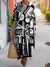 Women's Retro Geometric Stripes Art Print Cotton Lapel Button-Down Shirt Dress