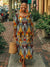 Women's Retro Pattern Geometric Art Print Long Sleeve Round Neck Dress
