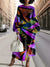 Women's Retro Textured Color Blocks Print Silhouette Round Neck Maxi Dress