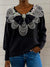 Women's Shining Rhinestone Flower Art Print Casual Cotton Shirt