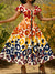 Women's Stylish Retro Geometric Print Short-sleeved Heart-shaped Neckline Maxi Dress