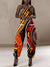 Women's Stylish Retro Geometric Striped Print Vintage Sleeveless Strap Denim Jumpsuit