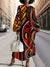 Women's Stylish Retro Geometric Stripes Art Print Silhouette Round Neck Maxi Dress