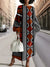 Women's Stylish Retro Geometric Stripes Art Print Silhouette Round Neck Maxi Dress