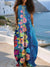 Women's Vintage Abstract Flower Art Print Casual Sleeveless Round Neck Maxi Dress