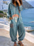 Women's Vintage Abstract Mushroom Art Print Long-sleeved Denim Cotton Hooded Jumpsuit