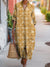Women's Vintage Ethnic Geometric Art Print Cotton Lapel Button-Down Shirt Dress