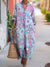 Women's Vintage Flower Art Print Cotton Lapel Button-Down Shirt Dress