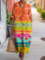 Women's Vintage Flower Art Print Cotton Lapel Button-Down Shirt Dress