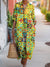 Women's Vintage Flower Art Print Cotton Lapel Button-Down Shirt Dress