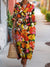 Women's Vintage Flower Art Print Cotton Lapel Button-Down Shirt Dress
