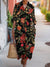 Women's Vintage Flower Art Print Cotton Lapel Button-Down Shirt Dress