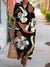 Women's Vintage Flower Art Print Cotton Lapel Button-Down Shirt Dress