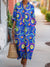 Women's Vintage Flower Art Print Cotton Lapel Button-Down Shirt Dress