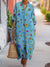 Women's Vintage Flower Art Print Cotton Lapel Button-Down Shirt Dress