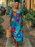 Women's Vintage Flower Art Print Long Sleeve Round Neck Dress