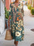 Women's Vintage Flower Art Print Pocket Cotton Dress
