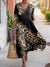 Women's Vintage Leopard Feather Art Print Long-sleeved V-neck Dress