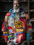 African Art Collection Saxophone Painting Print Knit V-neck Pullover Sweater