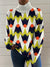 Colorblock Geometric Art Print Knit Turtleneck Pullover Sweater