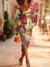 Colorful Abstract Art Prints V Neck Sweater Midi Dress