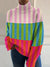 Colorful Striped Art Print Knit Turtleneck Pullover Sweater