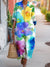 Elegant Retro Flowers Art Print V Neck Sweater Midi Dress