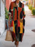 Elegant Retro Geometric Art Print V Neck Sweater Midi Dress